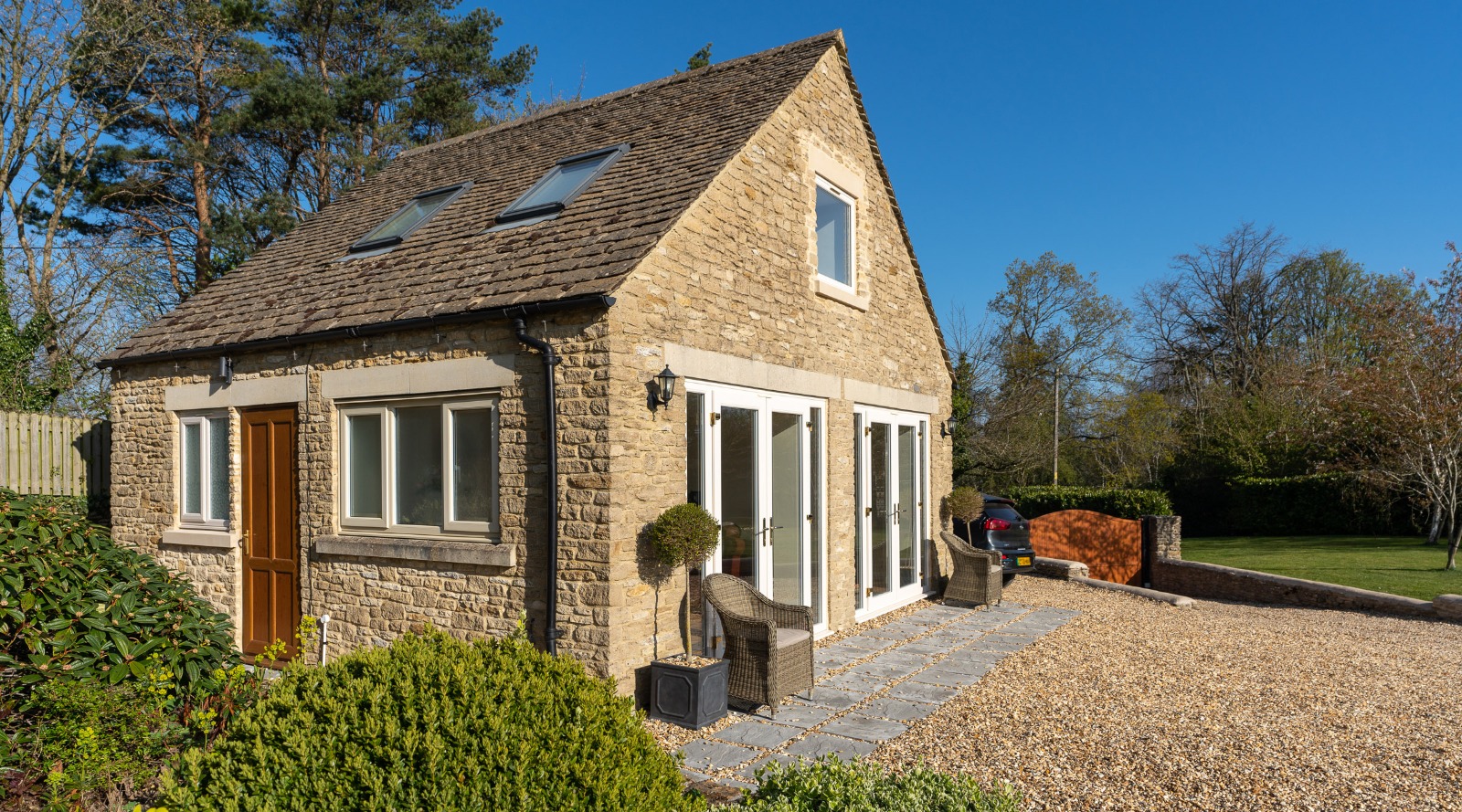 The studio has been developed to the highest standards, offering guests a modern and comfortable experience. Downstairs the studio has a fully equipped open plan kitchen, lounge and dining area as well as a modern bathroom with a walk-in shower. Upstairs the bedroom has a king-size bed and a picture window to enable guests to enjoy the stunning view across the valley.
